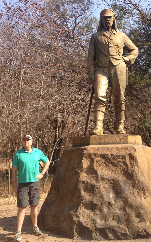 We had a wonderful trip and can’t resist sharing some of the aspects with you.  I have seen the falls before many times but the sheer awesomeness of it never fails to impress me.  I find myself wondering how David Livingstone must have felt when he came across this amazing sight in the middle of the bush.  I believe they heard the sound of the water before they saw it.  It is aptly named Mosi Oa Tunya by the locals or THE SMOKE THAT THUNDERS.   My husband pictured below looking quite fetching next to David Livingstone and me looking equally as fetching in my plastic raincoat!  M y two delinquent daughters making fun of me trying to take a photo.