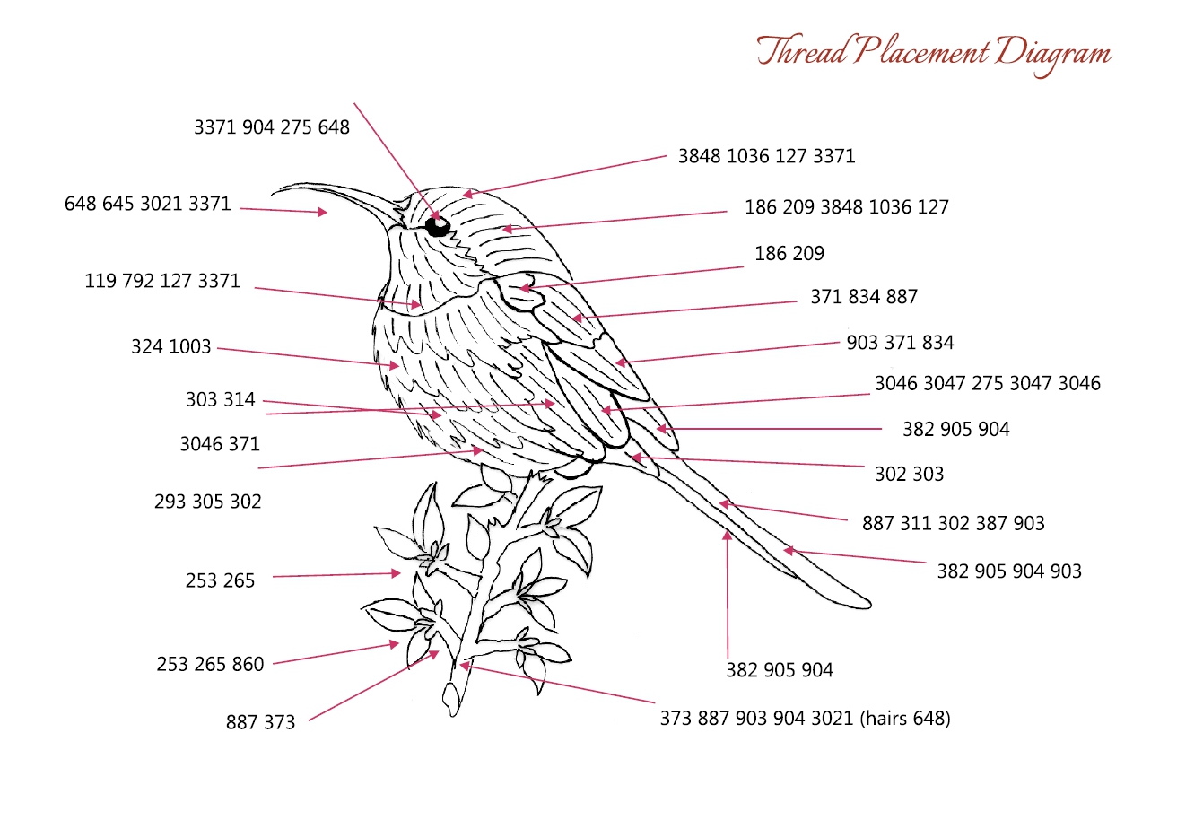 The Orange Breasted Sunbird is now available as a kit and digital download – it can be purchased on the Etsy shop here. I have moved my main shop across to Etsy as I like the layout and the customer service they offer so if you need anything thats the place to go. I have changed the layout of my kit instructions which now include a stitch diagram which tells you which colours are used for each area – I hope you find it helpful and would be interested to get your feedback.